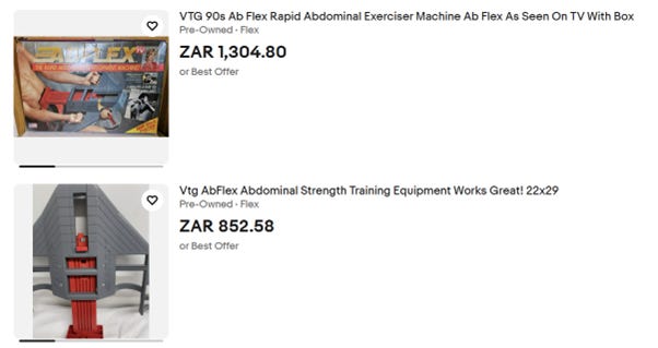 If you’re looking for an Abflex [like to prove me wrong and brag about YOUR six-pack abs after using this abdominal strength training equipment that works great!] I’ve probably still have mine in the garage – regrettably, without the box and six feet under layers of dust.
